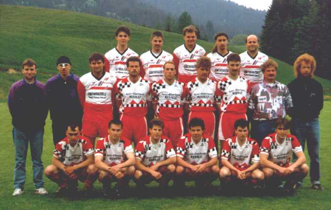 mitte: Heiko Seid; Rainer Rothfuß; Peter Frey; Roland Vonbach; Volker Kallfaß; Stefan Mast; Karlheinz Hauser; Trainer Peter Hobik; Spartenleiter Jo Sauter