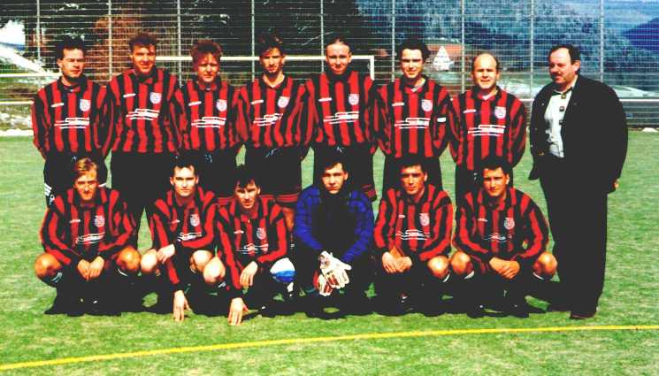 hinten: Roland Vonbach; Achim Hornberger; Stefan Mast; Matthias Illg; Rainer Rothfuß; Claus Mast; Karlheinz Hauser; Sponsor Walter Sackmann