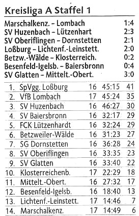 Ergebnisse + Tabelle
