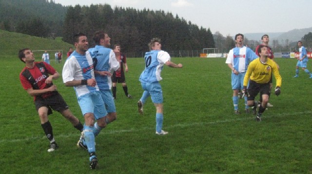 Nico Gässler erziehlt das 3 : 0 per Kopf, nach einer Flanke von Markus Neuchel