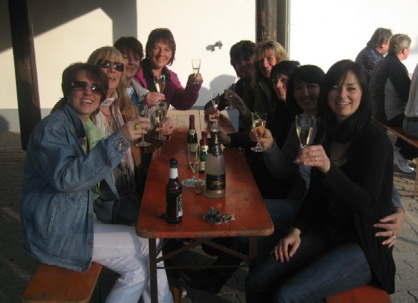Auch nach dem Spiel schmeckt den Fans der Sekt..........
